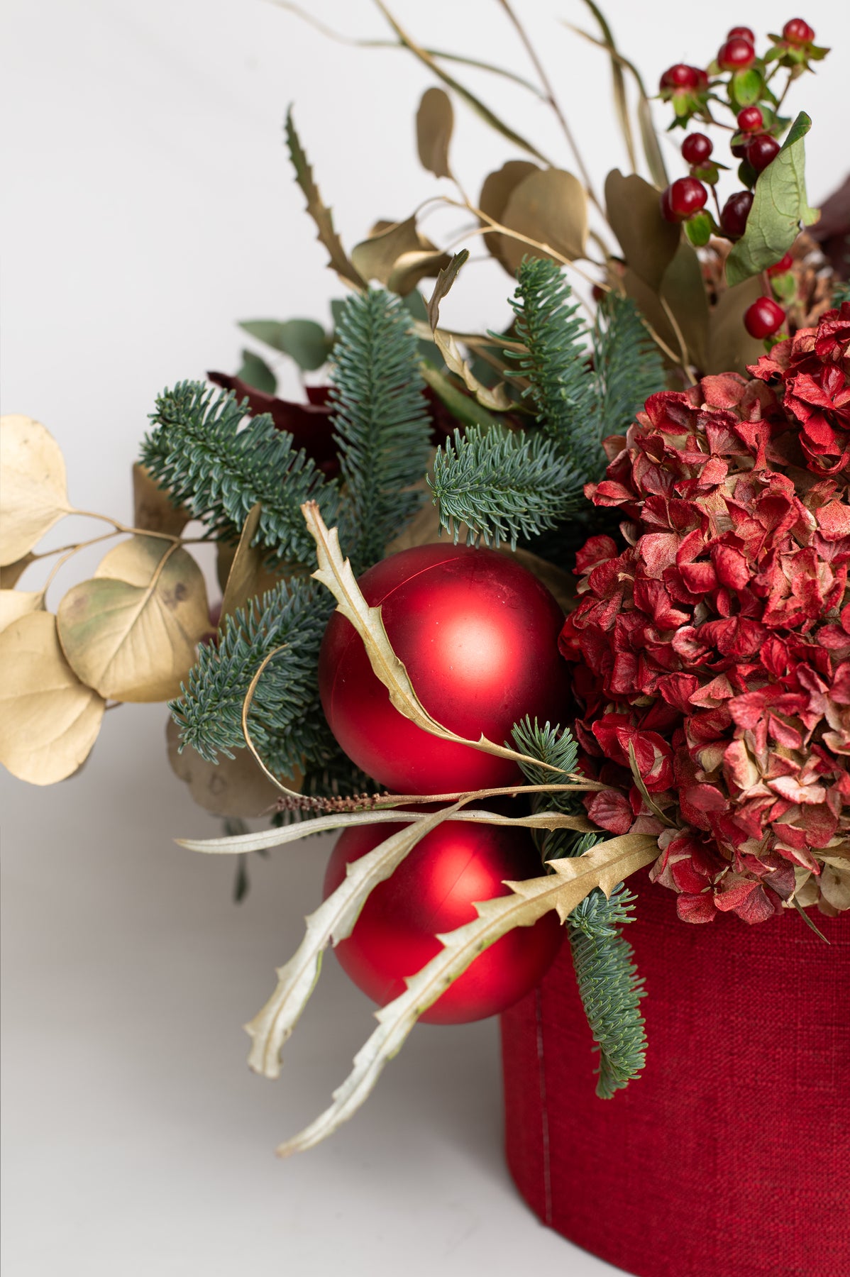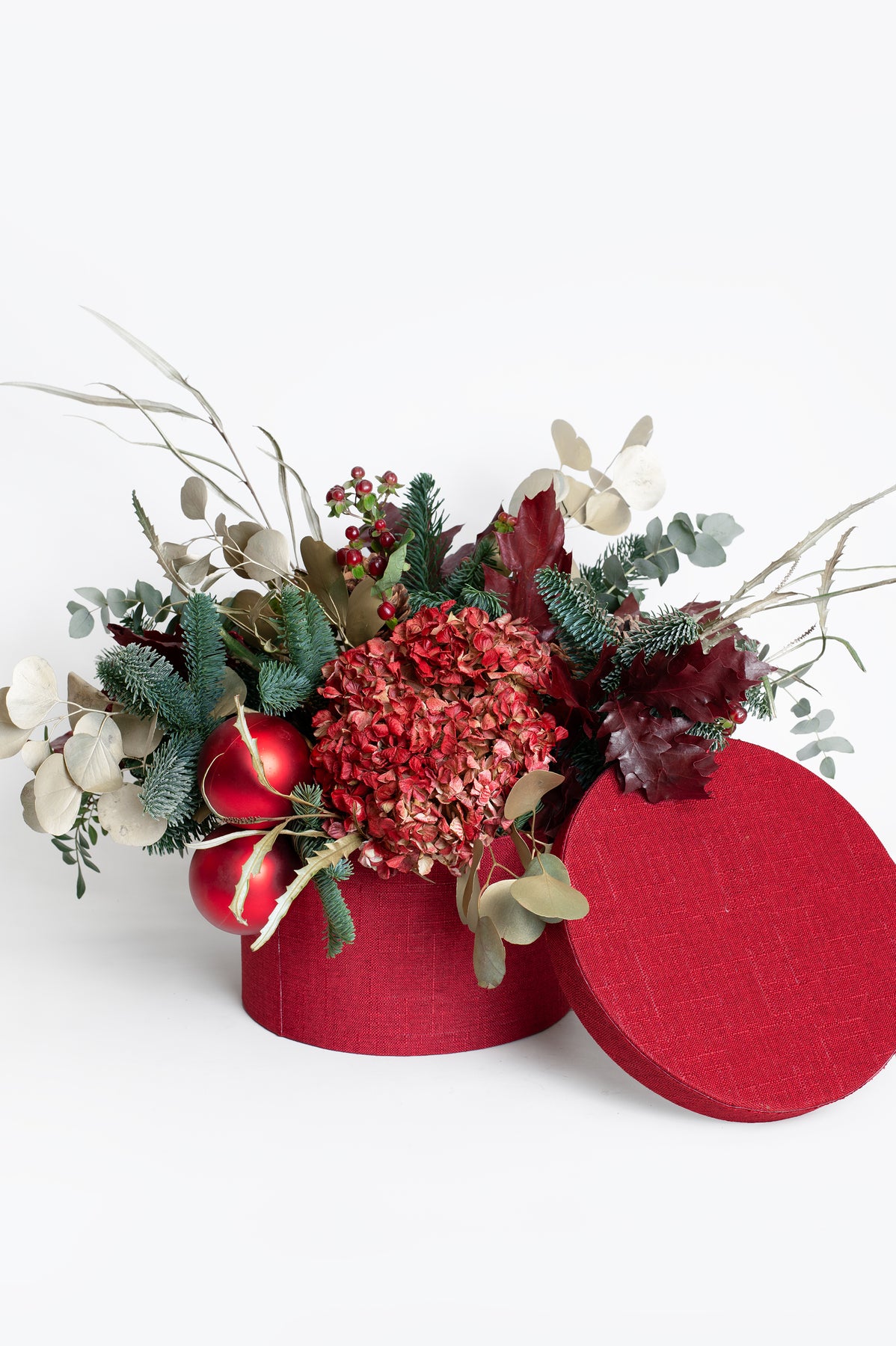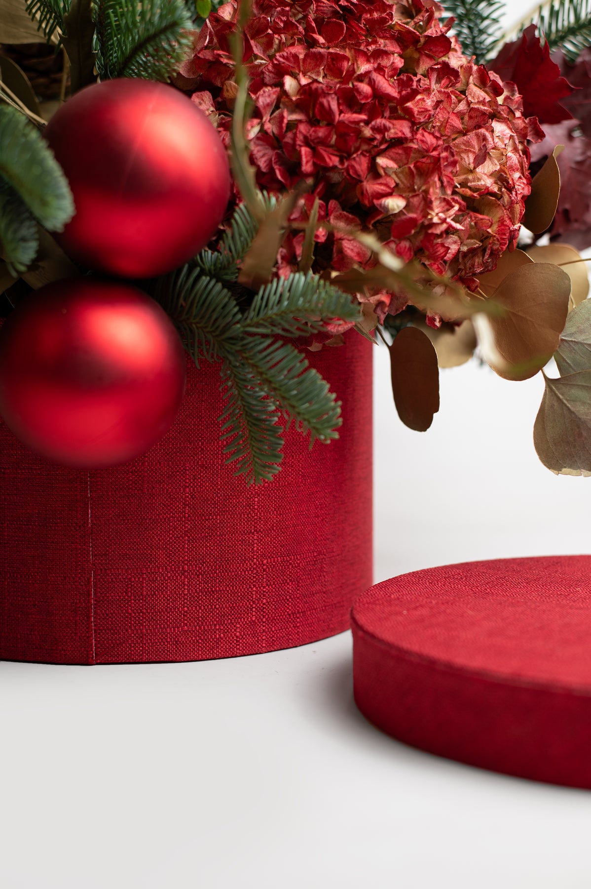 Machen Sie mit dieser roten Hutschachtel eine Reise zurück in die Zeit des traditionellen, anspruchsvollen und eleganten Weihnachtsfestes. Sie ist das perfekte Herzstück, das Sie in dieser Weihnachtszeit haben oder verschenken können.