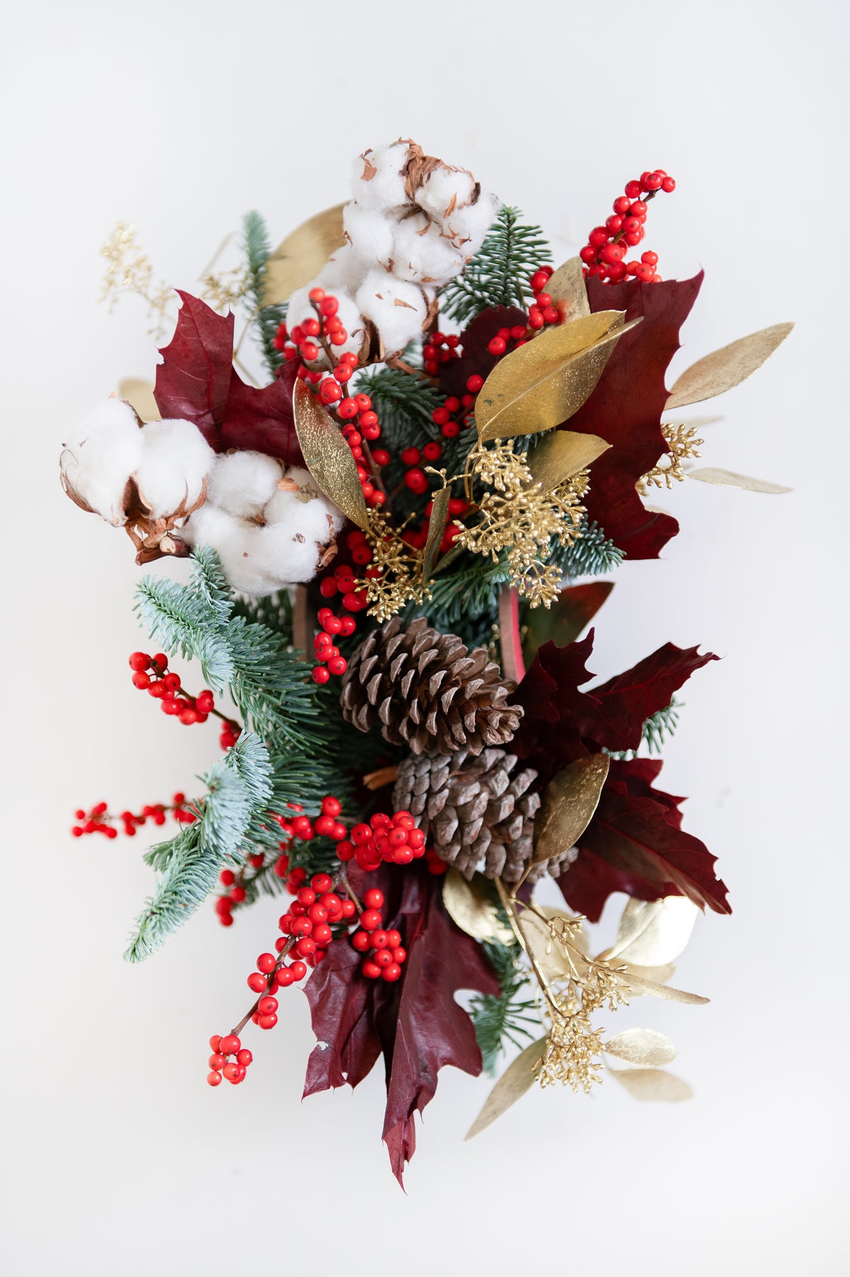 Oranger Illex | Roter Ahorn | Tanne | Grevillea | Baumwolle | Rote Kugeln | Weiße Myrte | Natürliche und weiße Birke