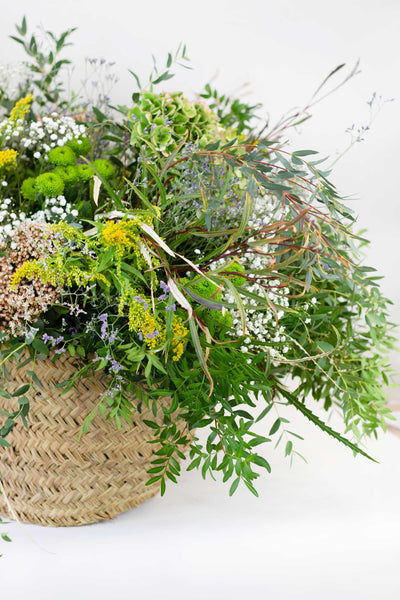 This basket is made up of multitude of seasonal flowers and endless stems in several varieties of green tones to make it impressive. Its composition does not have to worry you. When you receive it you will understand