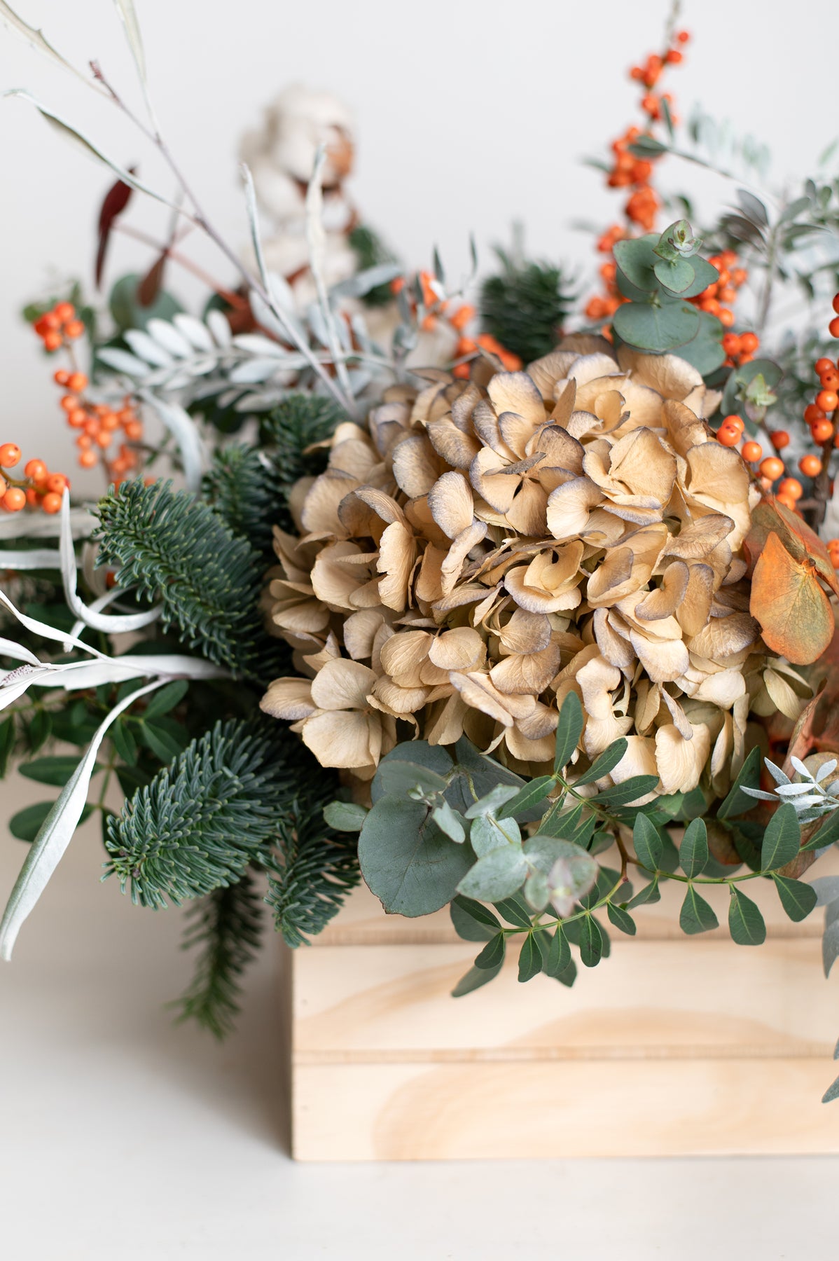Hortensia envejecida | grevillea | murta | abeto | eucalipto | otoñal |  murta blanca |